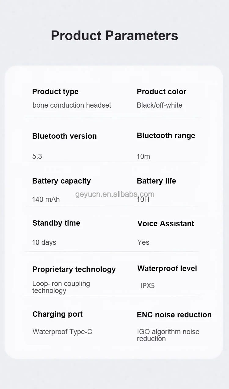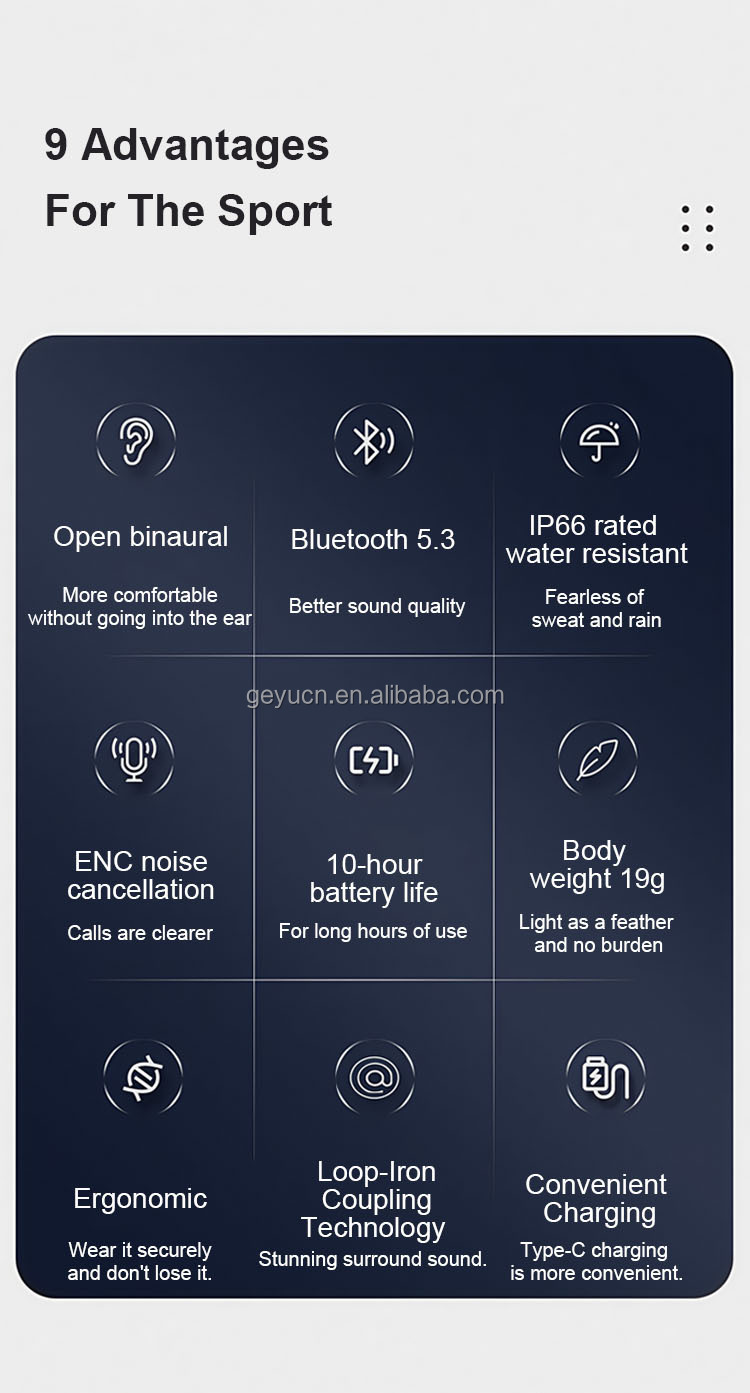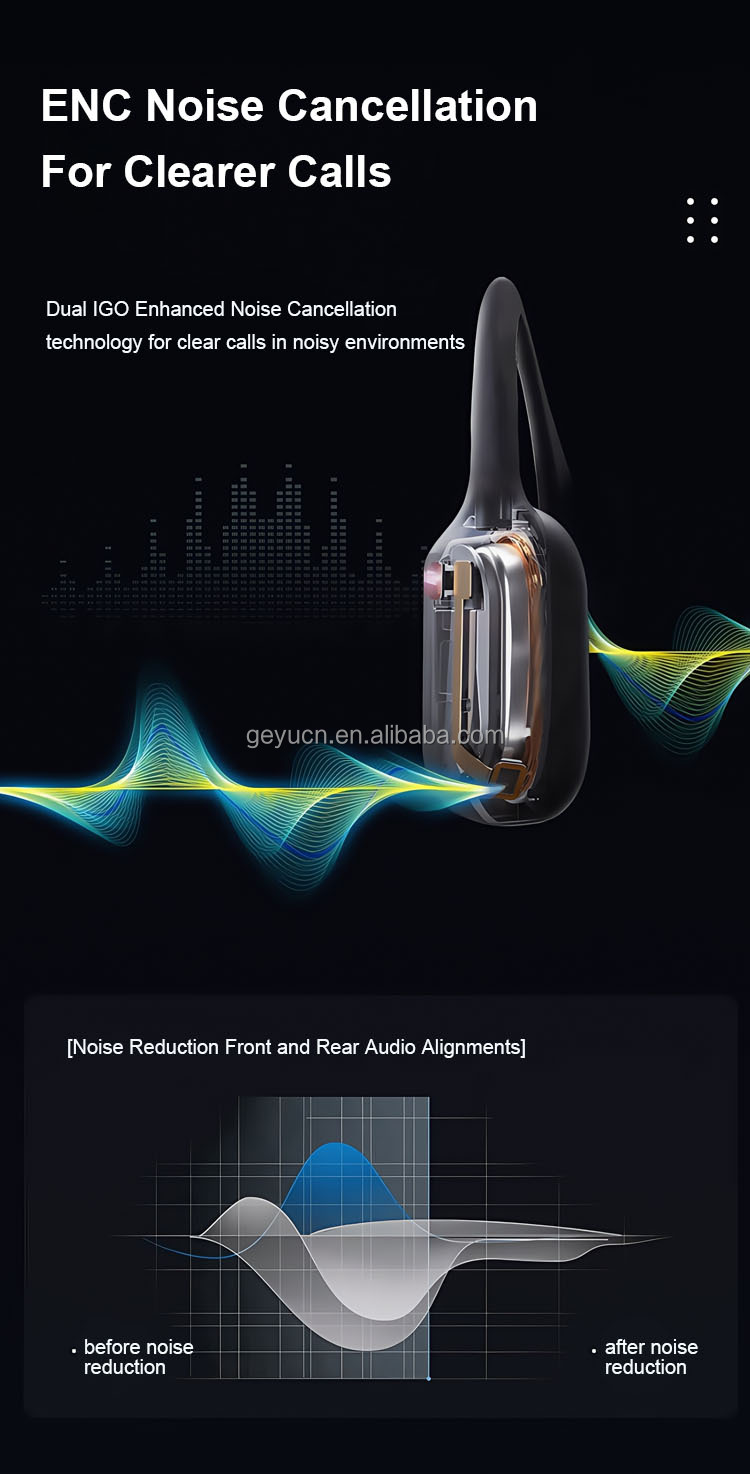 Shenzhen Geyu Technology Co., Ltd. was established in 2018 and is located in the beautiful city of Shenzhen. It focuses on the research and development, manufacturing and sales of acoustic products, including Bluetooth headsets, bone conduction headsets and wired headsets. Geyu Technology is committed to bringing users the ultimate auditory enjoyment through advanced acoustic technology. Whether you are a music lover or a sports expert, you can find the right headset for you here, especially our bone conduction headset, which not only allows you to pay attention to the sound of the surrounding environment while listening to music, ensuring safety, but also effectively reduces damage to the eardrum, which is really a combination of health and fashion. The company's philosophy is "Technology leads the future, sound connects the world". We continue to innovate and strive to provide users with a better audio experience in the field of acoustics, so that more people can enjoy high-quality acoustic products