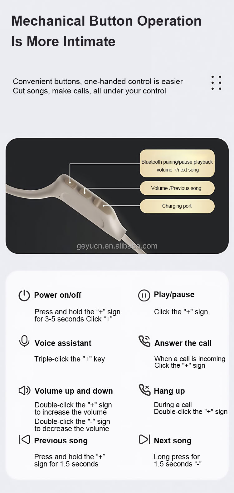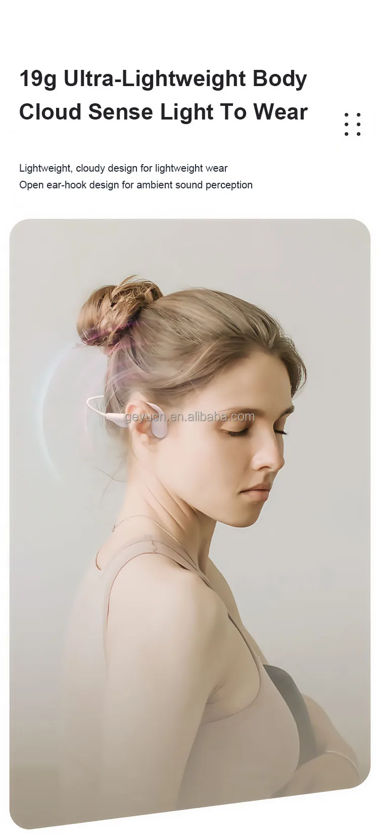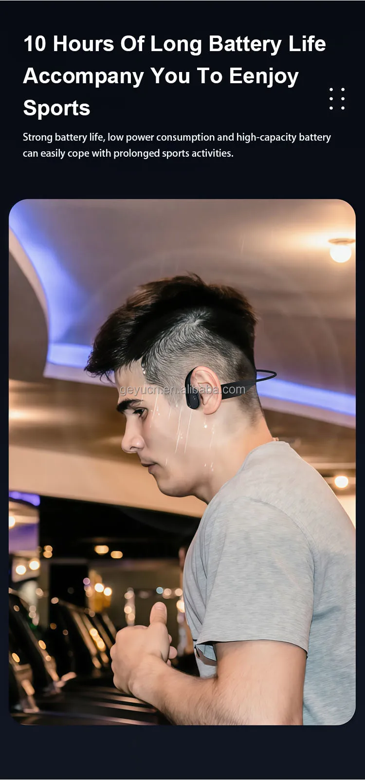 Shenzhen Geyu Technology Co., Ltd. was established in 2018 and is located in the beautiful city of Shenzhen. It focuses on the research and development, manufacturing and sales of acoustic products, including Bluetooth headsets, bone conduction headsets and wired headsets. Geyu Technology is committed to bringing users the ultimate auditory enjoyment through advanced acoustic technology. Whether you are a music lover or a sports expert, you can find the right headset for you here, especially our bone conduction headset, which not only allows you to pay attention to the sound of the surrounding environment while listening to music, ensuring safety, but also effectively reduces damage to the eardrum, which is really a combination of health and fashion. The company's philosophy is "Technology leads the future, sound connects the world". We continue to innovate and strive to provide users with a better audio experience in the field of acoustics, so that more people can enjoy high-quality acoustic products